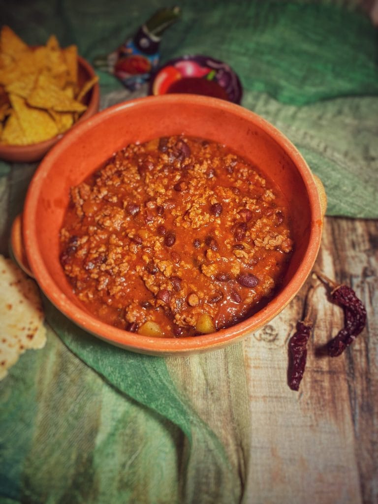Deixe apurar por mais dez minutos e sirva o chili con carne quente.