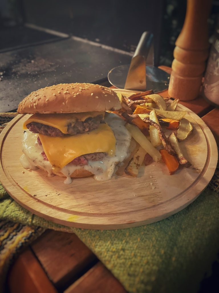 Entre as várias cenas memoráveis do filme (evitando spoilers), a que me inspirou foi onde o Chef Julian Slowik (Ralph Fiennes) prepara um DOUBLE CHEESE SMASH BURGER (veja o vídeo abaixo).