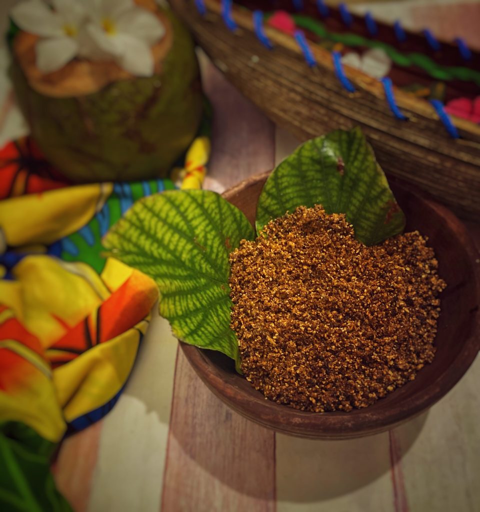 A Farofa de amendoim (amendoim) e coco (coco), é uma variante agridoce do mais clássico entre os acompanhamentos brasileiros: a farofa, ou seja, farinha de mandioca (ou de milho) torrada na gordura.