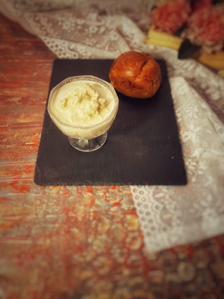 Tradicionalmente, é apreciada com um brioche com tuppo ou com a panzotta (brioche sem tuppo) ambas à base de massa fermentada com ovo aromatizada com baunilha ou cítricos, com uma forma semelhante a um coque: uma base semiesférica coroada pelo chamado “tuppu” (do francês toupet, ou seja, o cabelo preso na nuca).