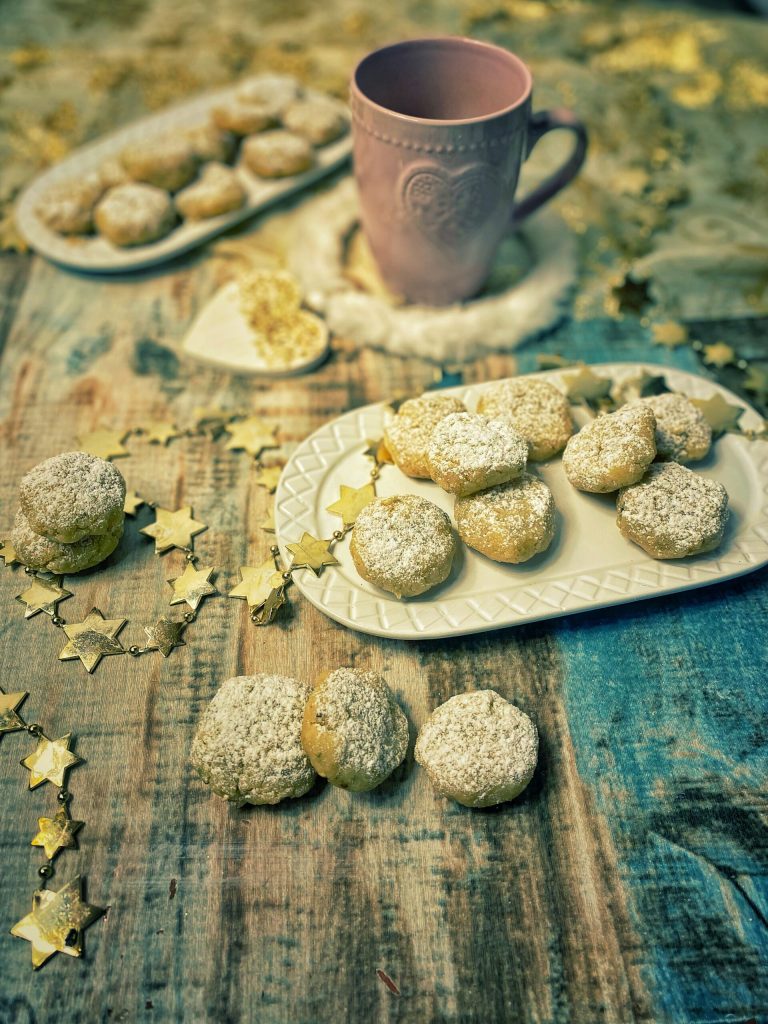 Aqui estão os Kahk: quebradiços, não muito doces e levemente polvilhados com açúcar de confeiteiro, com farinha, manteiga e gergelim… nós os preparamos juntos durante o encontro com ViaggiandoMangiando On air: jantar africano.