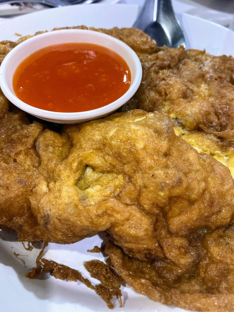 As chalotas, cebolinha, ou proteínas como porco moído ou frango, ou ostras, carne de caranguejo, aquele experimentado no restaurante Ton ma yom durante minha primeira semana em Ao Nang em outubro de 2024, era recheada com carne de porco, como a receita a seguir: Kai Jeow Moo Sab ไข่เจียวหมูสับ.
