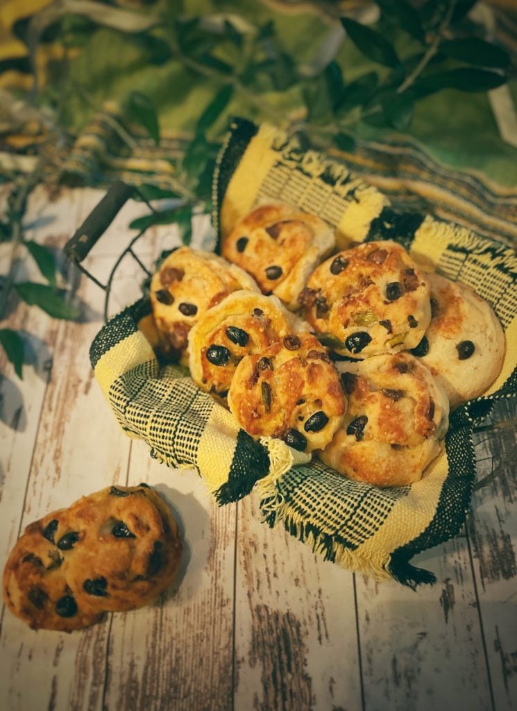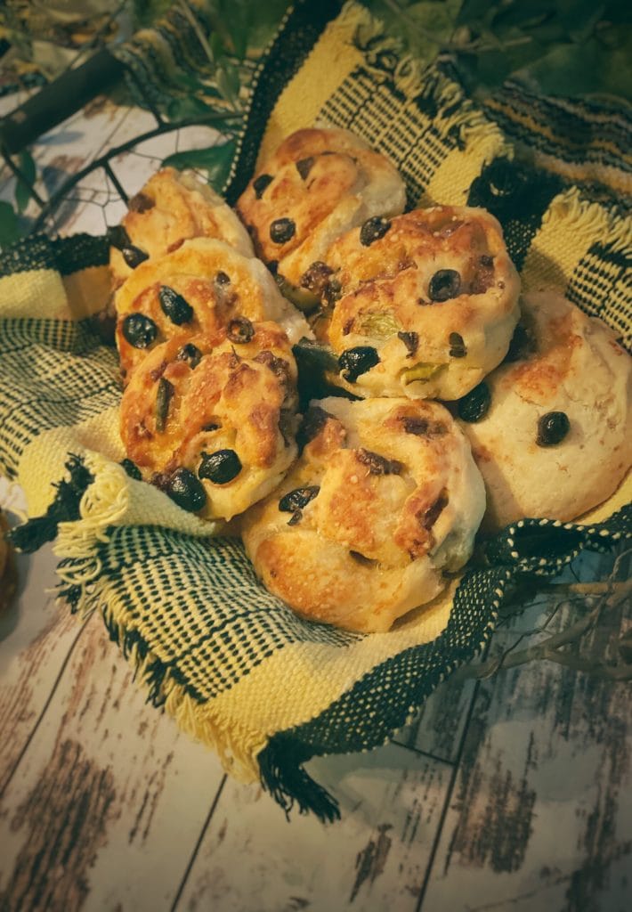 Rolos de massa fermentada recheados com ingredientes saborosos, enrolados em espiral e assados no forno.