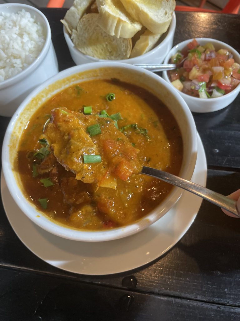 Trata-se de um prato baseado no uso de cortes humildes que, através de cozimento prolongado e da combinação de uma base aromática de tomate, pimentão e coentro fresco, ganham textura macia e um perfil de sabor marcante.