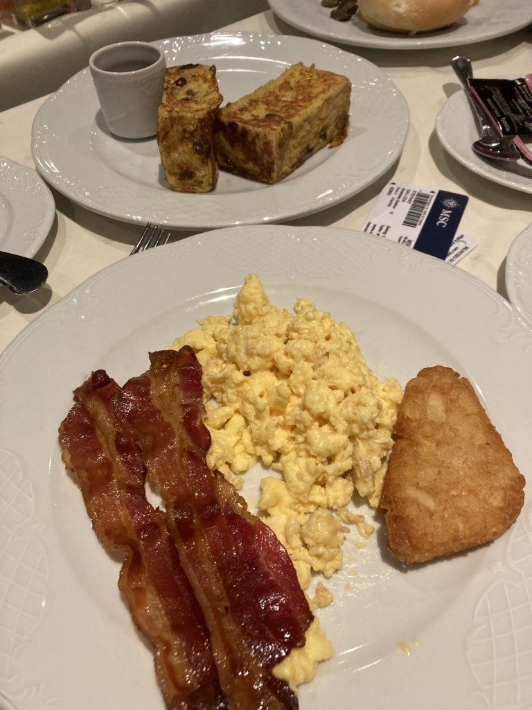 Ovos Benedict e hashbrowns a bordo da MSC.