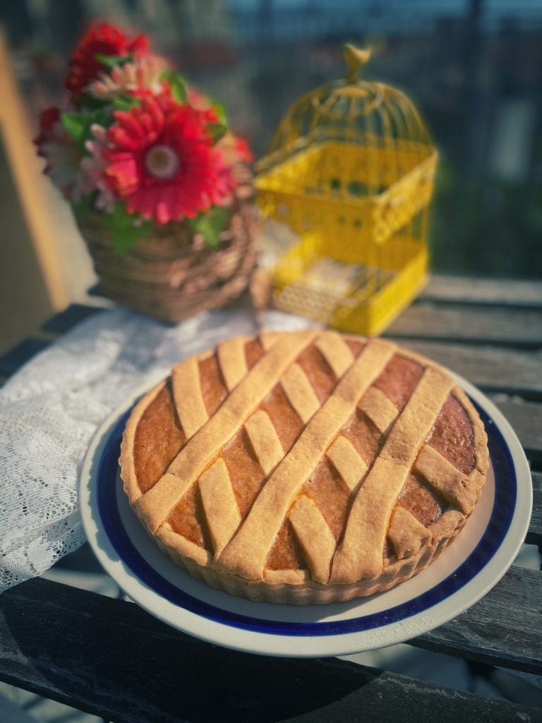 Era tradicionalmente preparada no Sábado Santo, em preparação para o domingo de Páscoa, e sua presença nas mesas napolitanas era fundamental para celebrar a festa.É verdade que devem haver 7 tiras de massa frolla por cima?