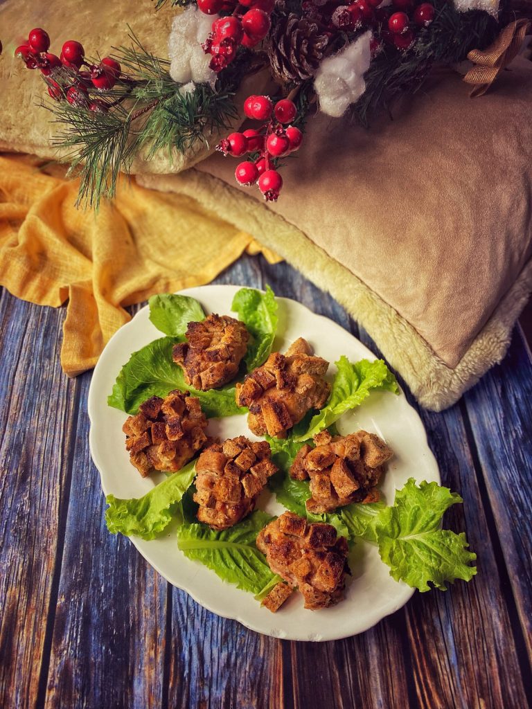 Cortar a crosta do pão (100 gr) em cubos e tostar no forno a 150°C por 10 minutos (ou na fritadeira a ar).