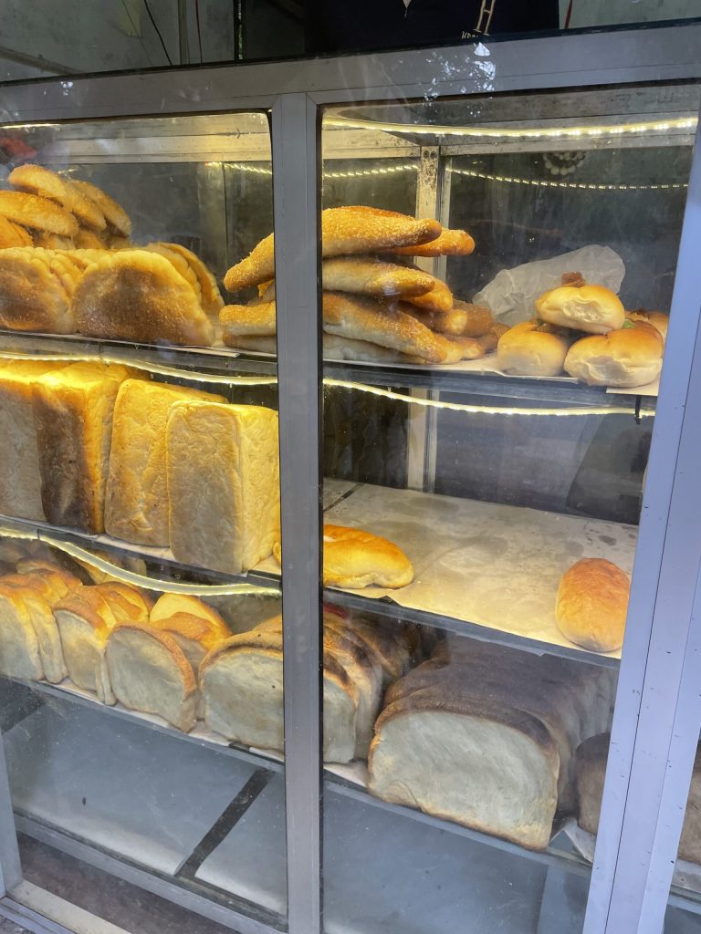 Na foto, um carrinho do Sri Lanka encontrado na minha viagem de outubro de 2025 que mostra diferentes tipos de pão, incluindo Roast e Thai paan.