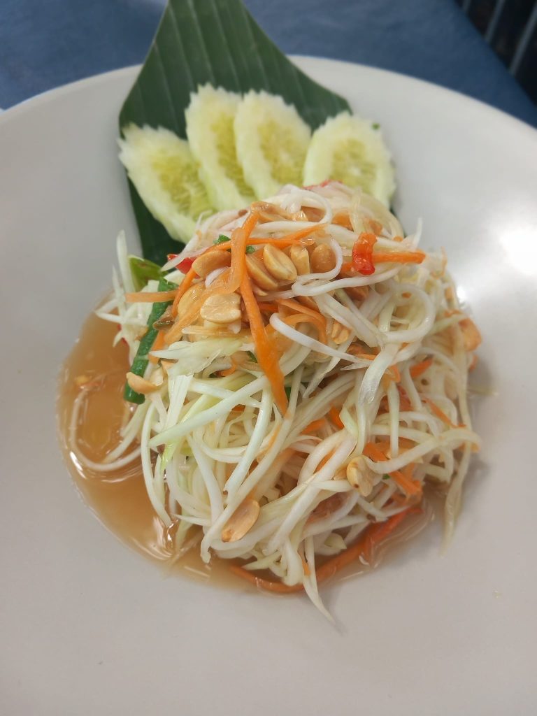 A salada de mamão verde também é popular na região tailandesa vizinha de Isan, cuja população é composta principalmente por pessoas de etnia lao e de onde se espalhou para o resto da Tailândia.