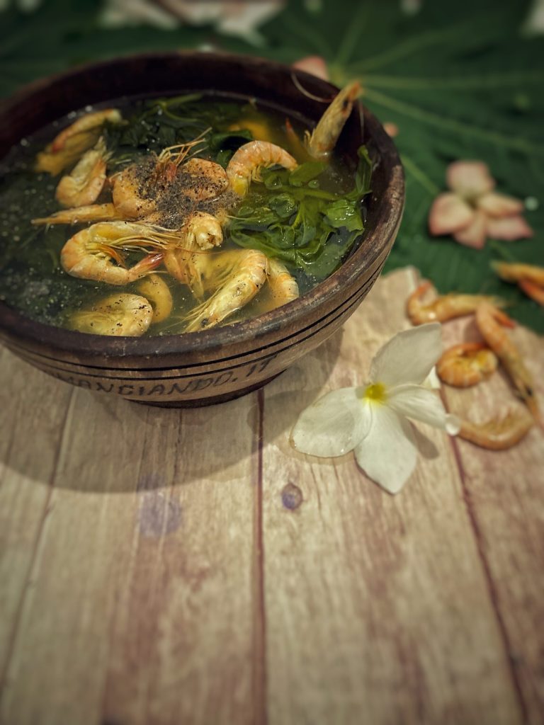 Composta por tucupi, camarões secos, goma de tapioca, jambu e verdura de folha verde.