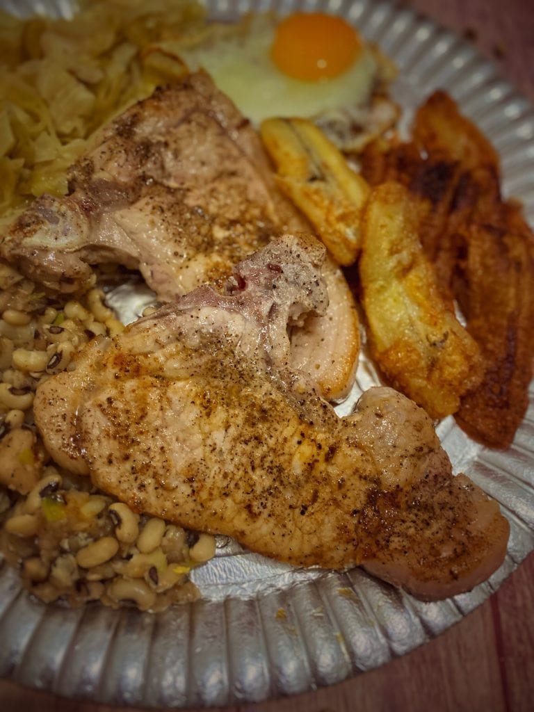 Estes acompanham a costeleta de porco, o couve refogado e a banana frita e muitas vezes também é adicionado o ovo frito, às vezes o arroz, a linguiça e o torresmo.