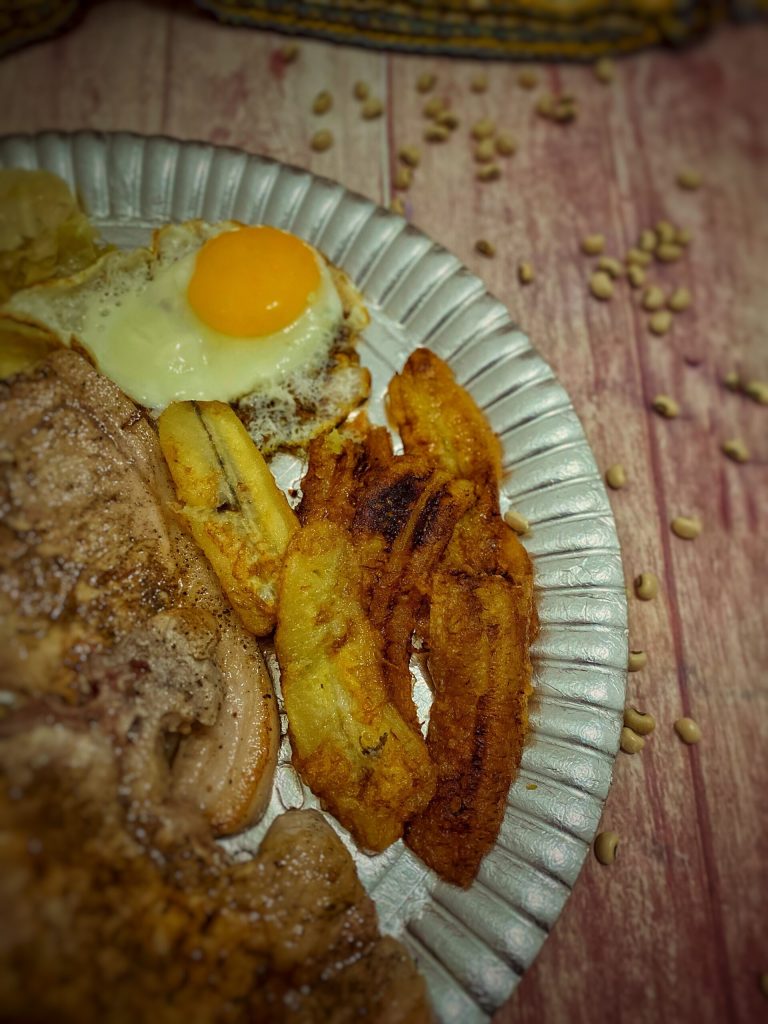 Fatias de plátano maduro fritas ou Patacón